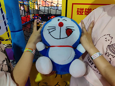 蹦沙卡拉卡,蹦沙卡拉卡,全場響起了音樂,原來是有獎(jiǎng)競答活動,優(yōu)勝者可以選擇在全場甚至于整個(gè)倉庫選擇自己最喜愛的娃娃將心愛的它帶回家,一輪輪的比拼,我們的道婷小同志過五關(guān)斬六將,終于進(jìn)入了總決賽,最后激動人心的時(shí)刻到來了,冠軍爭奪大PK,咦一一,沒想到這么激烈的游戲最后以石頭剪刀布的方式落下帷幕,而冠軍當(dāng)然就是我們幸運(yùn)無比的道婷小同志,她選擇了最愛的哆啦A夢(晚上她一定能抱著她睡個(gè)好覺)哈哈哈哈